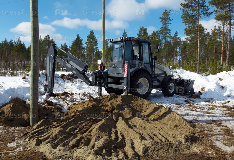 Экскаватор копает яму