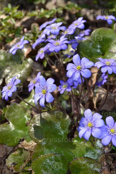 Первые весенние цветы - пролески крупным планом, Беларусь