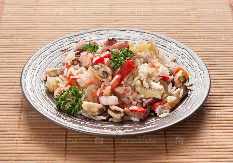 Рис с морепродуктами и овощами