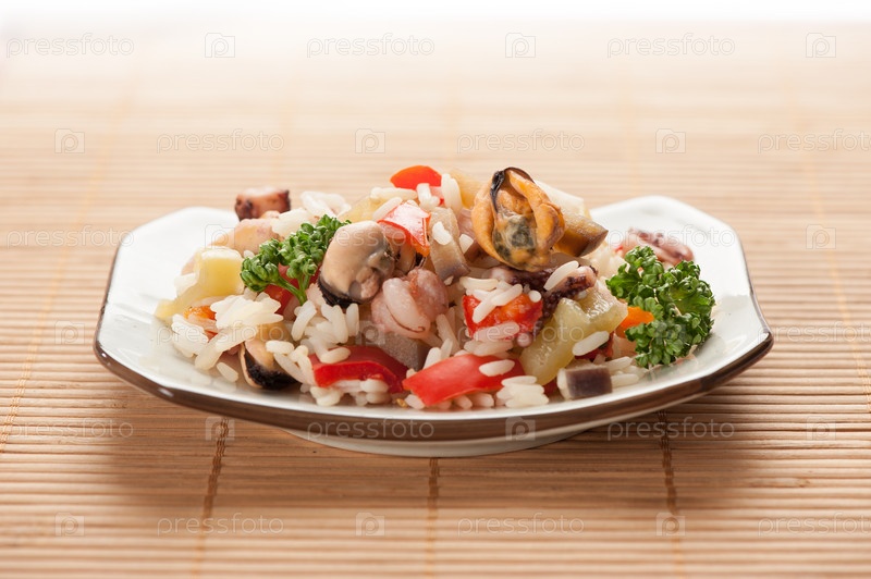 Рис с морепродуктами и овощами