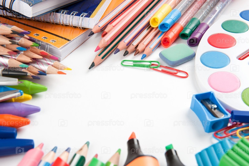 Школьные принадлежности на белом фоне