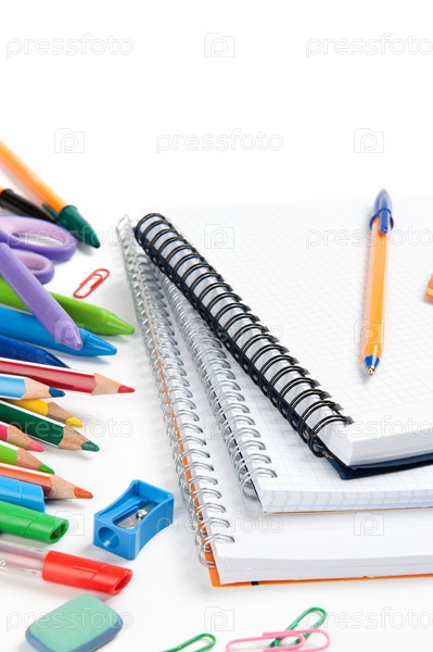 Школьные канцтовары, изолированные на белом фоне