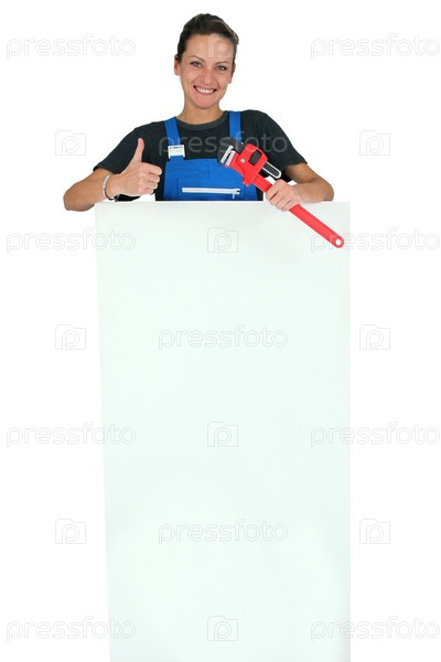 Строитель с баннером
