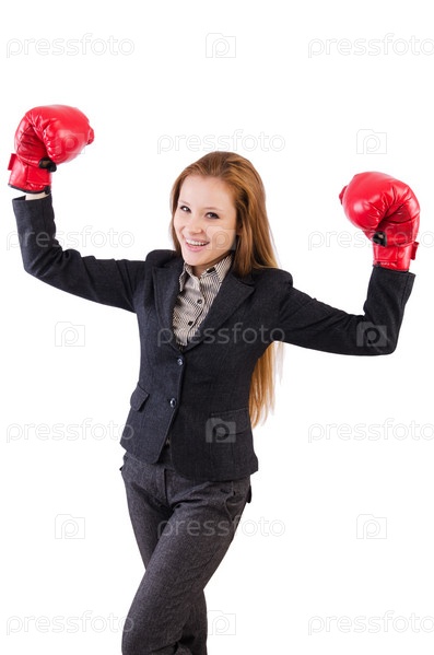 Бизнес-леди в боксерских перчатках
