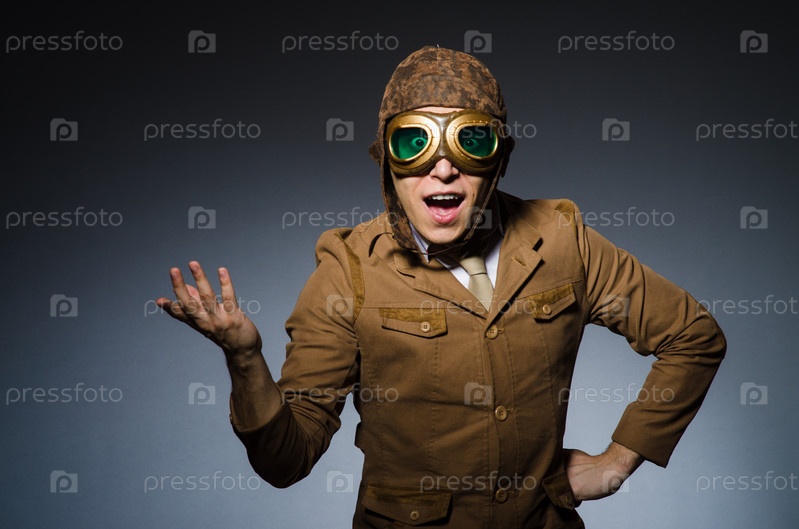 Смешной пилот с очками и шлемом