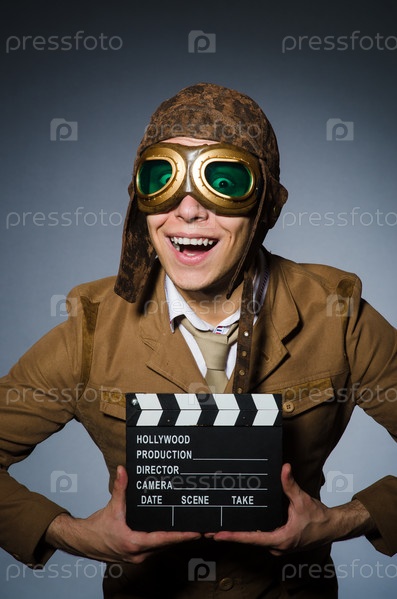 Смешной пилот с очками и шлемом