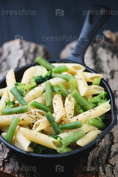 Пенне с овощами в сковороде