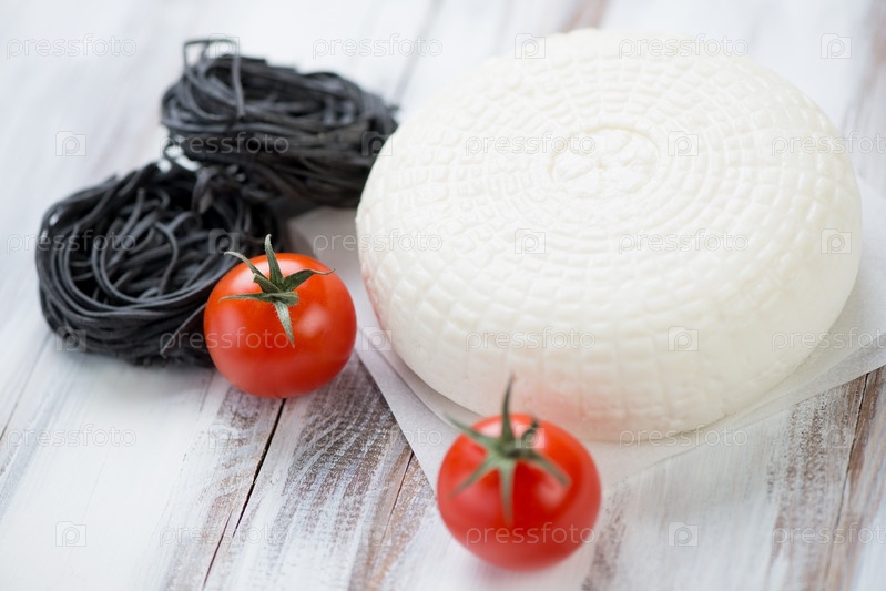 Адыгейский сыр, тальятелле и свежие помидоры черри