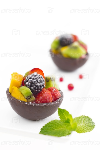 Фруктовый салат на белом фоне