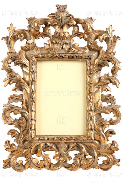 Резная золотая деревянная рамка, изолированная на белом фоне