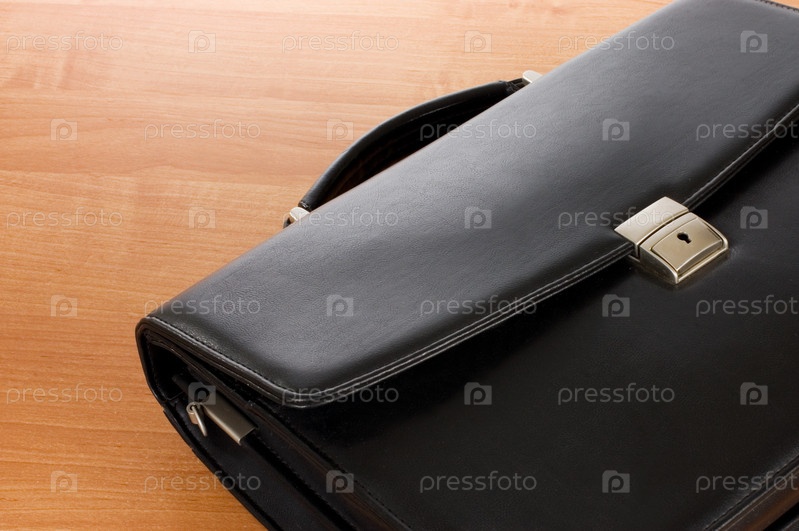 Кожаный портфель на деревянном столе