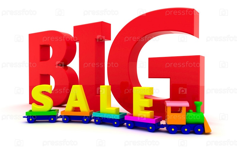 Надпись БОЛЬШАЯ РАСПРОДАЖА на игрушечном паровозе