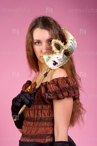 Красивая молодая женщина в вечернем платье с карнавальной маской