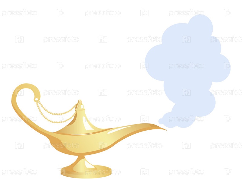 Золотая волшебная лампа на белом фоне