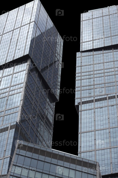 Современные высотные здания в ночное время