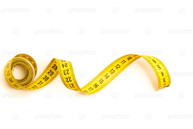 Желтая сантиметровая лента на белом фоне