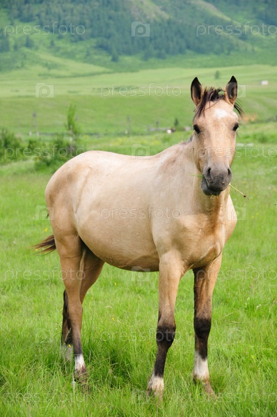 Лошадь на зеленом лугу