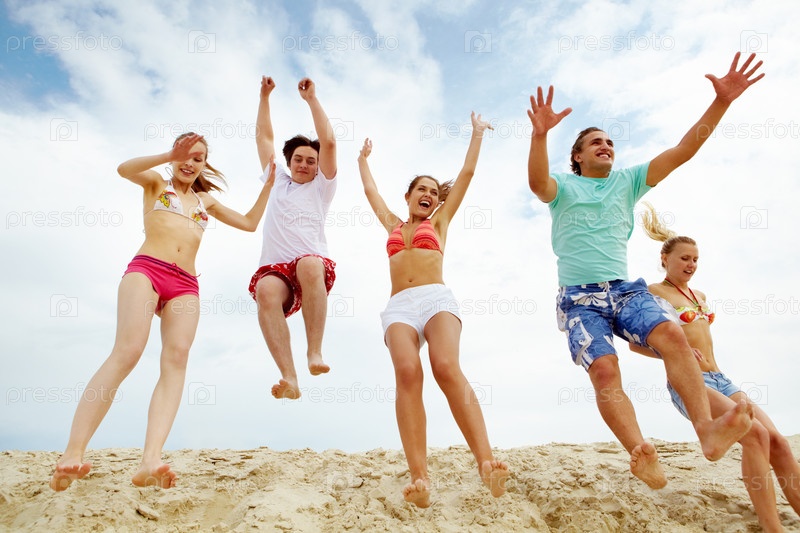 Счастливые друзья в прыжке