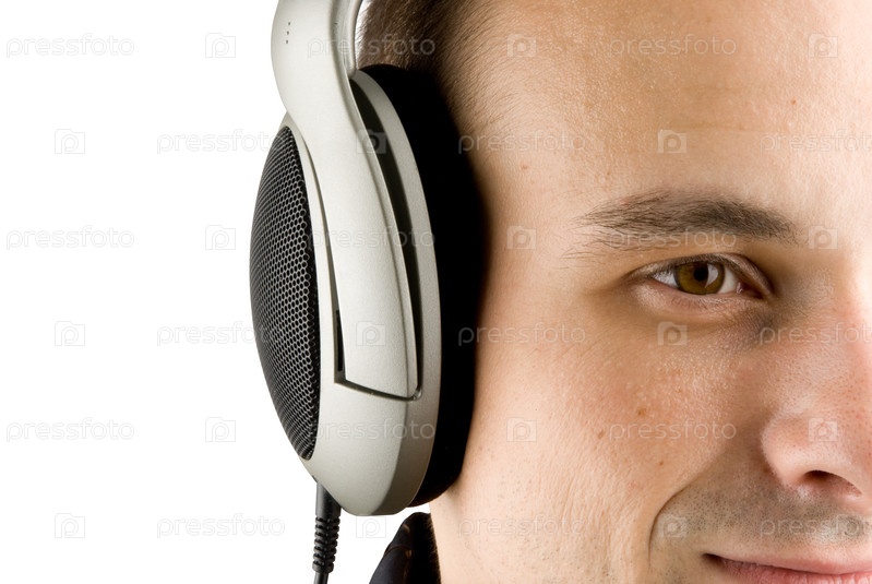 Мужчина, наслаждающийся музыкой.Изолированный на белом