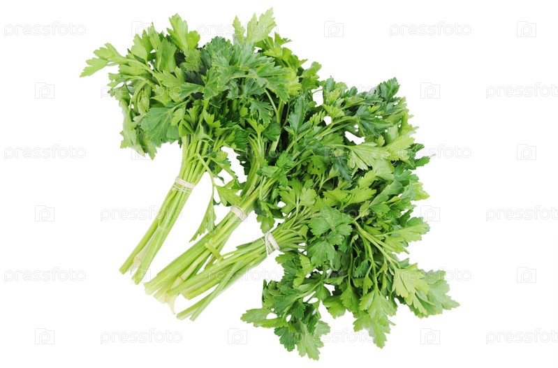 Пучки петрушки на белом фоне