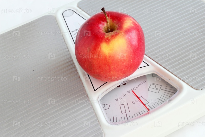 Красное яблоко на весах