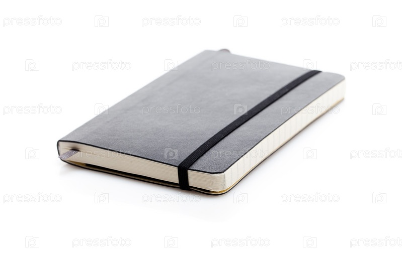 Черная записная книжка Молескин, изолированная на белом фоне