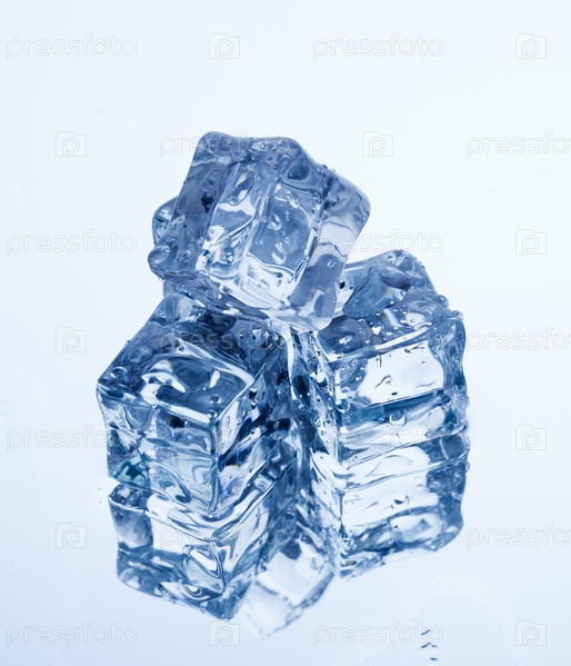 Кубики льда на зеркальной поверхности