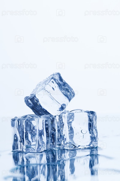Кубики льда на зеркальной поверхности