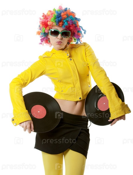 Девушка в стиле диско с пластинками