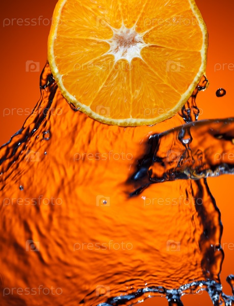 Апельсин с брызгами воды