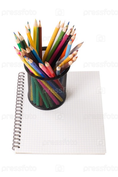 Набор карандашей, стоящий на тетради