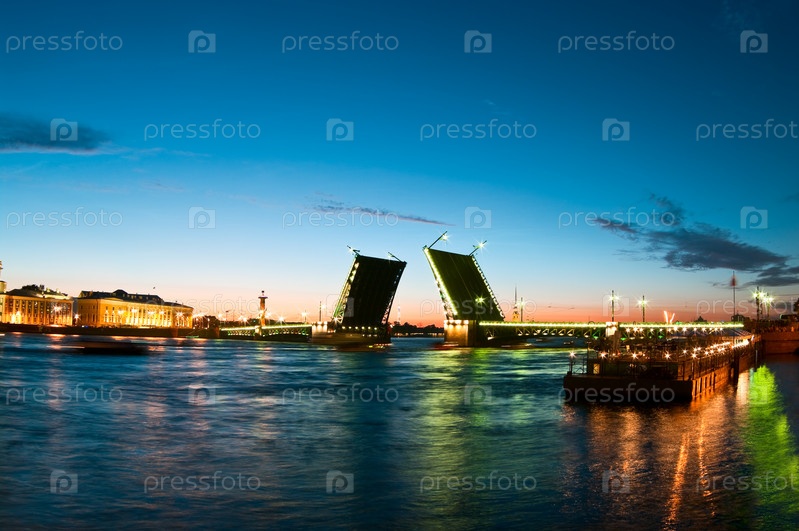 Разводной мост в ночное время суток