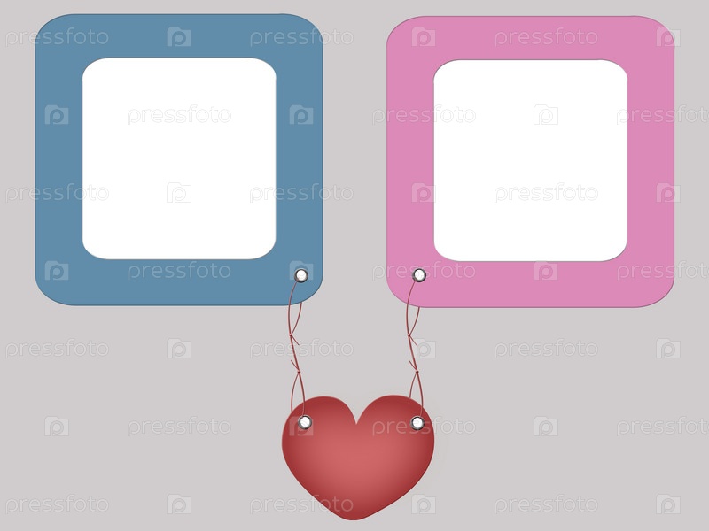 Синяя и розовая рамки, соединенные сердечком