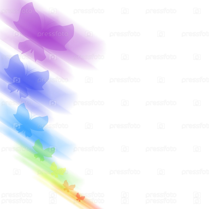 Размытые силуэты разноцветных бабочек на белом фоне