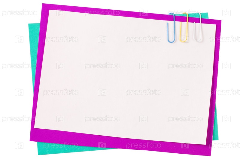 Цветная бумага и скрепки на белом фоне