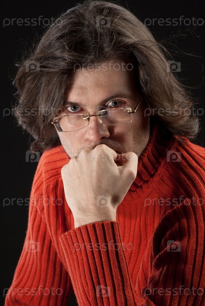 Задумчивый мужчина в очках, крупный план