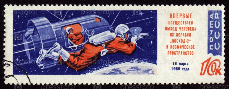 Почтовая марка СССР с изображением советского космонавта Алексея Леонова в открытом космосе, 1965 год