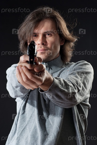 Мужчина целится из пистолета