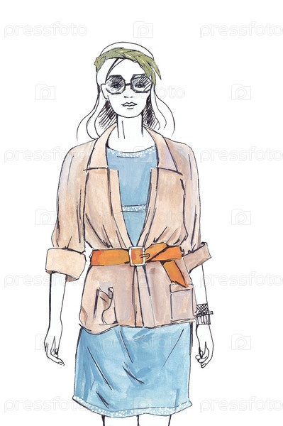 Женщина в летнем костюме. Гуашь и тушь