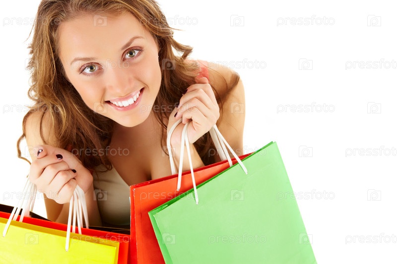 Счастливая женщина с покупками