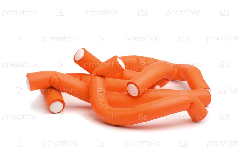Оранжевые бигуди на белом фоне