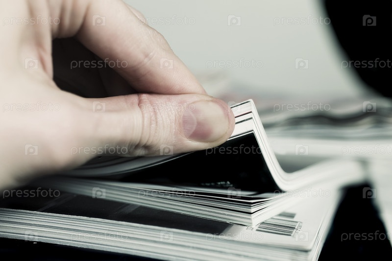 Рука человека и стопка журналов крупным планом
