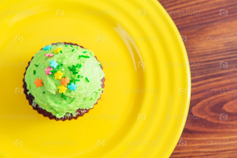 Сладкий десерт с зеленым кремом
