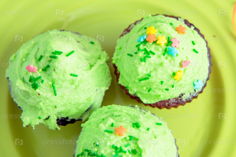 Сладкий десерт с зеленым кремом