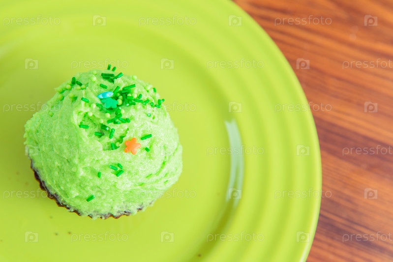 Сладкий десерт с зеленым кремом