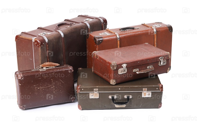 Старые чемоданы, изолированные на белом фоне