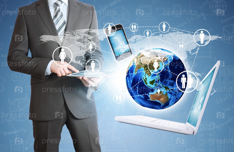 Мужчина, электроника и глобус