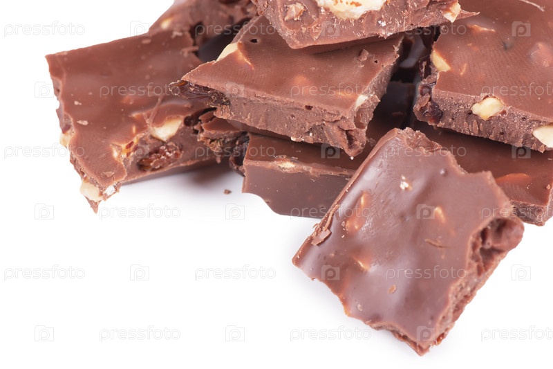 Куски шоколада на белом фоне