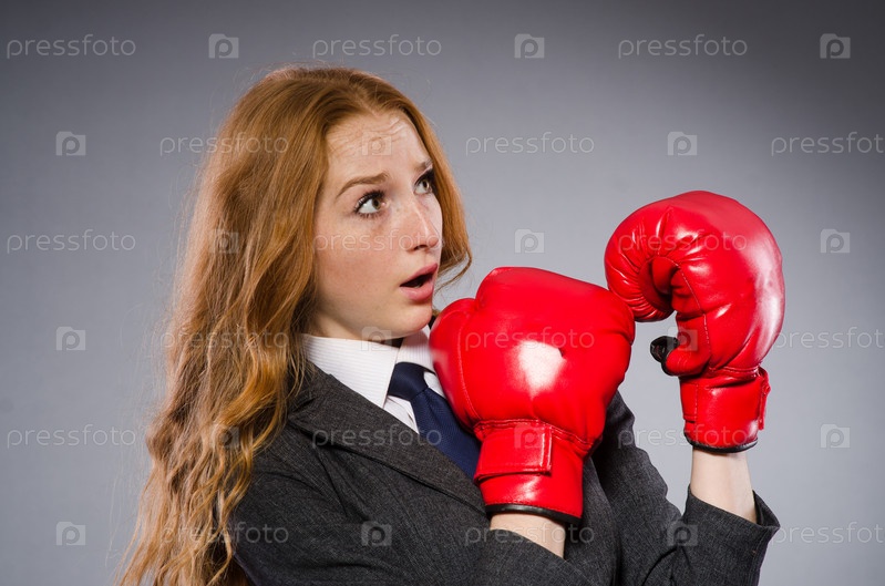 Женщина в боксерских перчатках в темной комнате