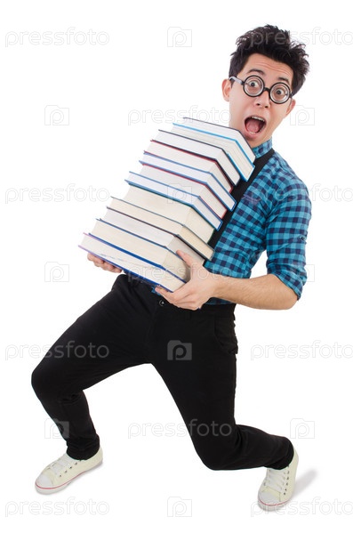 Смешной студент с книгами